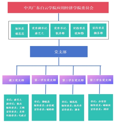 中共广东白云学院应用经济学院委员会于2025年2月获批广东省第五批“党建工作标杆院系”培育创建单位。学院党委于2017年3月成立,下设党支部4个,其中教工党支部1个,学生党支部3个。现有党员106人,教工党员32人,学生党员74人。