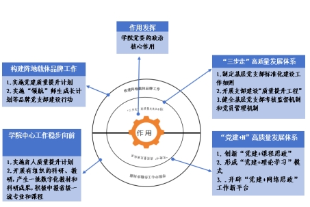 学院党委聚焦“五个到位”的重点任务,探索党建工作创新路径,坚持“总体要求与分类指导相结合、典型引路与问题导向相结合、“双创”任务与中心工作相结合、落实责任与考核监督相结合”的工作原则,坚持以发挥学院党委的政治核心作用为核心、以构建“党建+N”和“三步走”战略为抓手、以实施党建和育人品牌提升计划为牵引,构建党建引领“一融双高”工作模式,推动学院党建工作和中心工作高质量发展,积极创建新时代院(系)党建工作标杆,示范带动基层党支部全面进步全面过硬。