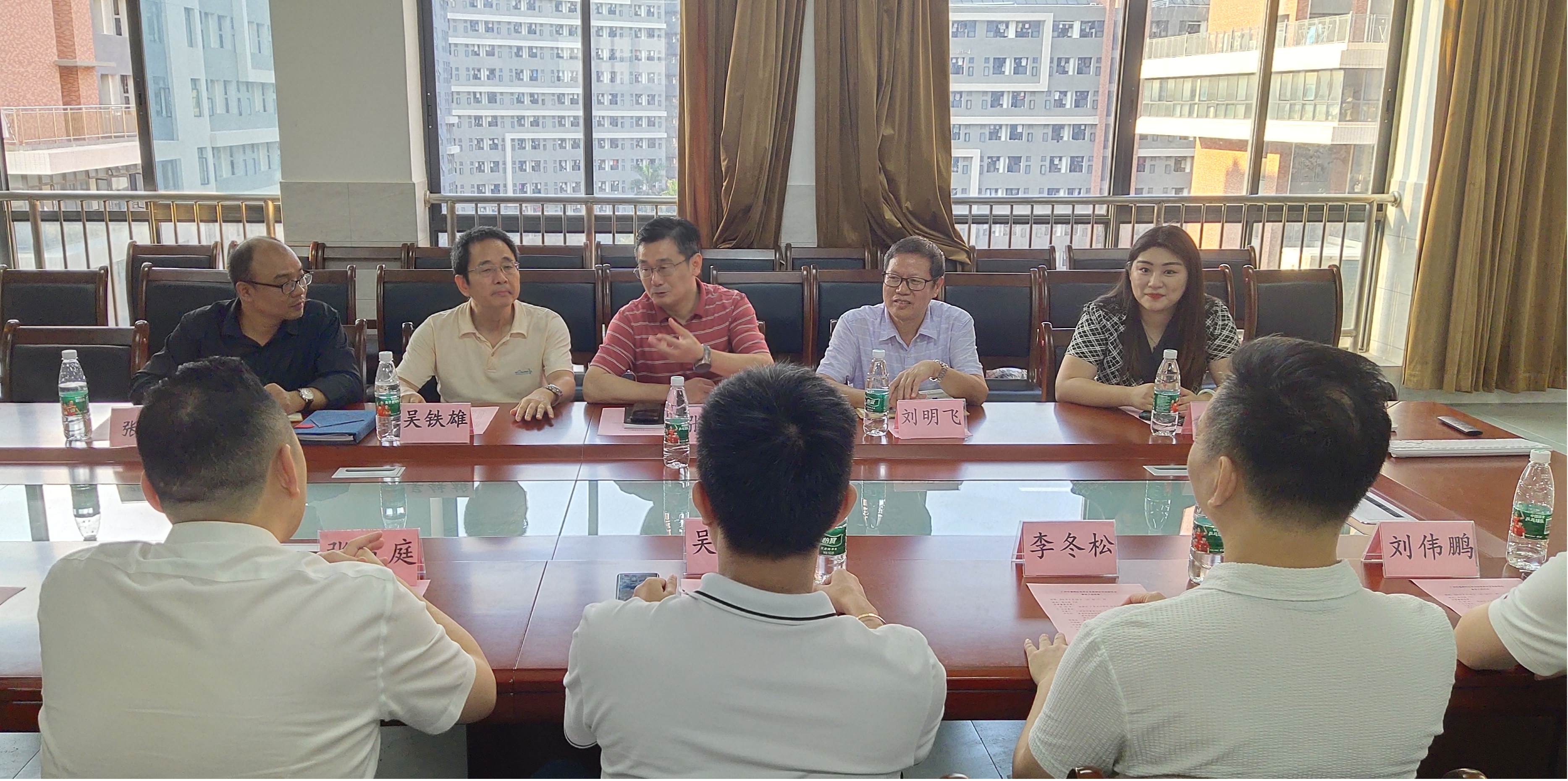 为深化产教融合,助力学校“3+1”校企协同育人实践教学高质量发展,9月18日下午,应用经济学院邀请广州前行者旅行社董事长、广东省人民调解员吴嘉文先生,广东省情调查研究中心研究员、番禺金融协会执行会长、得大(广州)投资控股集团董事长李冬松先生,博纳德集团、产业投资集团总裁张置庭先生、广东川壹建工集团董事长林羽能先生,碧桂园集团广东区域营销总经理刘伟鹏先生在敦品楼710会议室进行了座谈交流。校长助理张国安,应用经济学院院长吴铁雄、副院长刘明飞,数字经济与统计系主任张杰、副主任谷卓桐,企业实践教学导师刘举承参加了本次座谈。