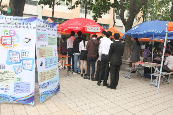 本次“金融进社区”创新实践活动由我校财经学院与民泰银行共同合作举办,主要进行了金融知识宣传普及、银行业务模拟办理和现场全真招聘面试等内容。活动得到了民泰银行的大力支持,他们除了对相关学生进行前期的专门培训外,还积极组织银行工作人员在现场进行布展和面试,提供银行业务办理专门用单和宣传小册。活动进行得非常顺利,现场学生踊跃参与,气氛活跃。