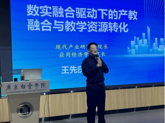 王先庆院长以“数实融合驱动下的产教融合与教学资源转化”为题,结合宏观政策与微观案例,深入剖析了当前产教融合存在的核心问题,聚焦数实融合背景下高校教学资源转化与产业对接的现实挑战及路径探索,具体从五个方面展开:一是实体经济的数字化跃迁;二是国家战略导向与制度演进;三是数实融合作为新时代经济形态的基本特征与教育挑战;四是产业变革对人才能力结构的重塑;五是教学资源转化的路径创新与智能赋能,谈到高等教育应培养具备真实数据环境问题定义与解决能力的复合型人才,人才应具备的岗位能力是业务理解力、数字工具力与系统思维力三位一体复合型,指出产教脱节的三大症结:内容滞后于技术发展、案例简化脱离真实逻辑、考核忽视实践能力,提出模块化任务包、虚拟仿真实验与跨学科项目库,强调建立真实案例库,通过实地调研和产业对接,将知识点与产业需求结合,要学会使用最新的工具,例如:借助人工智能构建自己的专属教学智能体,同时,提到未来教学模式将向数据驱动、AI深度融入、动态进化和人机协同共创的方向持续演进。